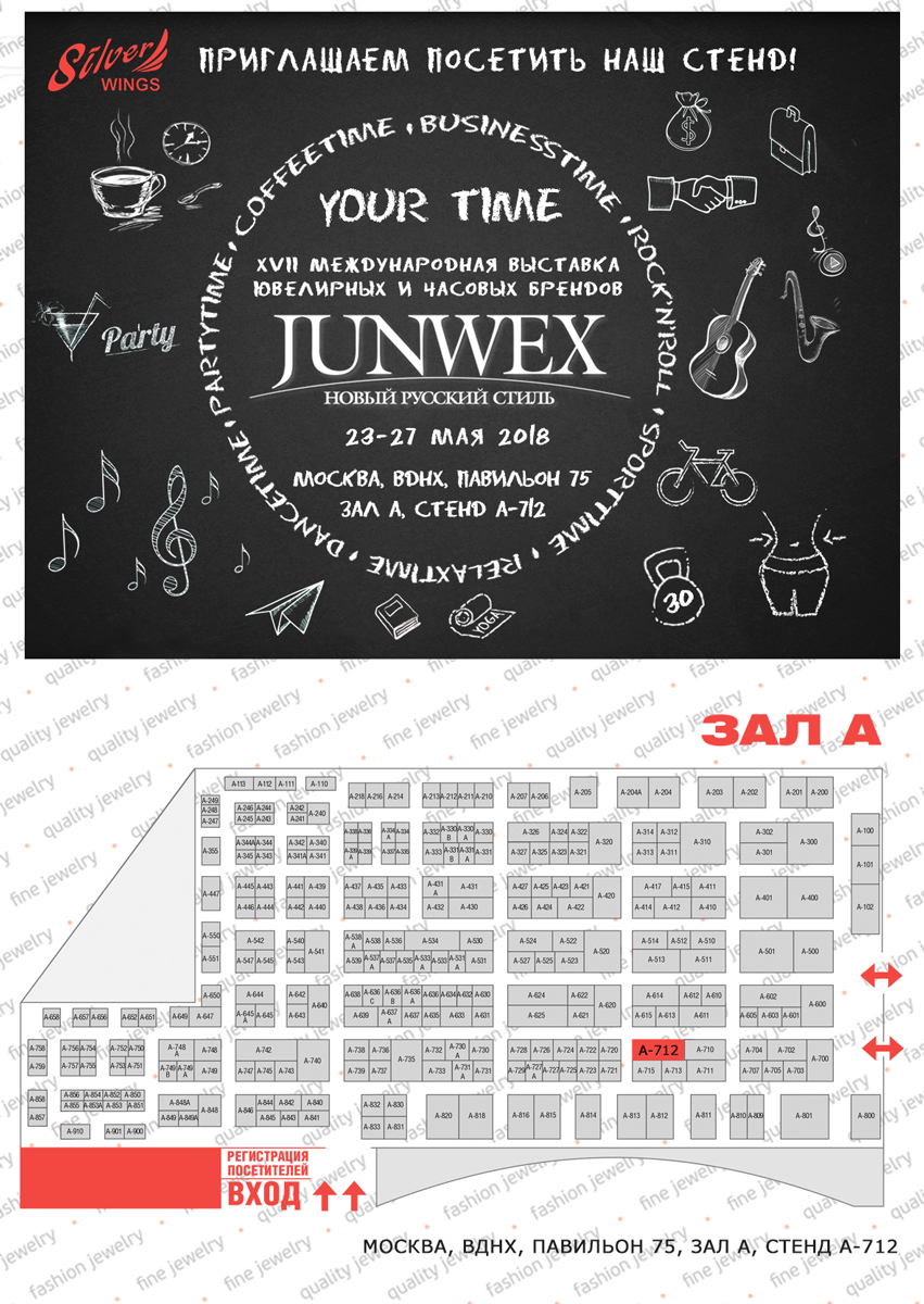Дорогие друзья! С 22 мая по 27 мая 2018 г. приглашаем Вас посетить наш стенд на международной выставке ювелирных изделий «JUNWEX Новый Русский Стиль» на территории ВВЦ, павильон 75, стенд А712.